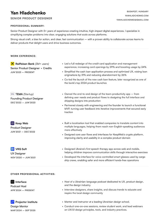 craft, a bias for action, and 5 years of experience across fintech, startups, and 0 → 1 products