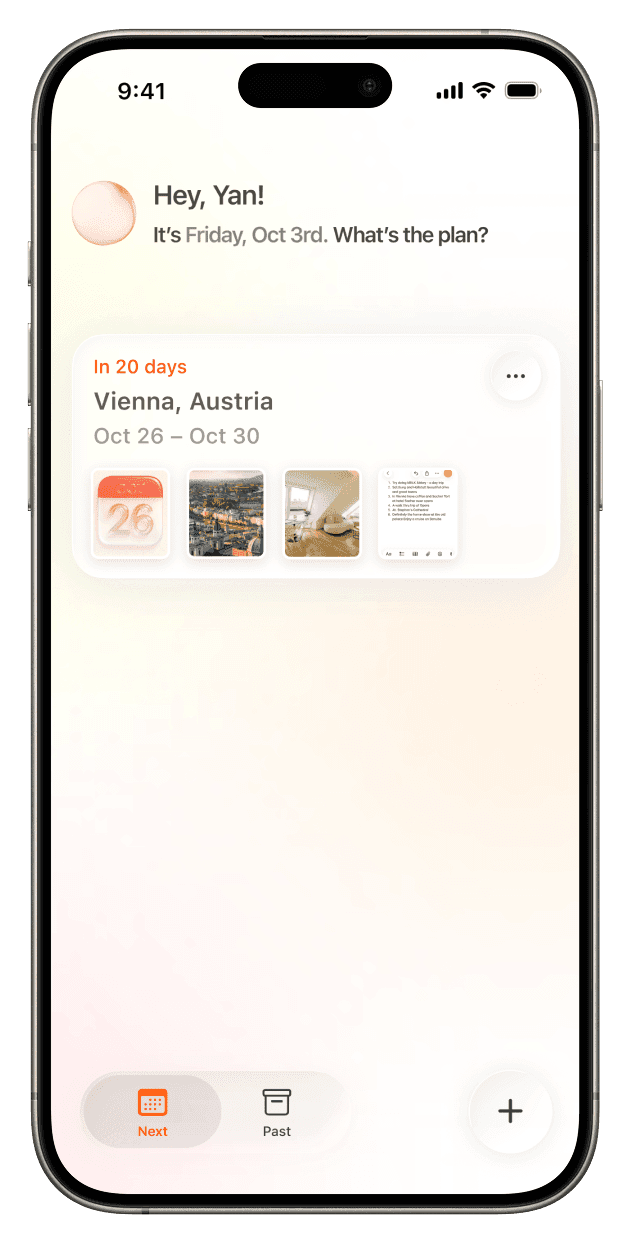 Once complete, everything turns into a simple, shareable plan card that keeps all essentials in one place.