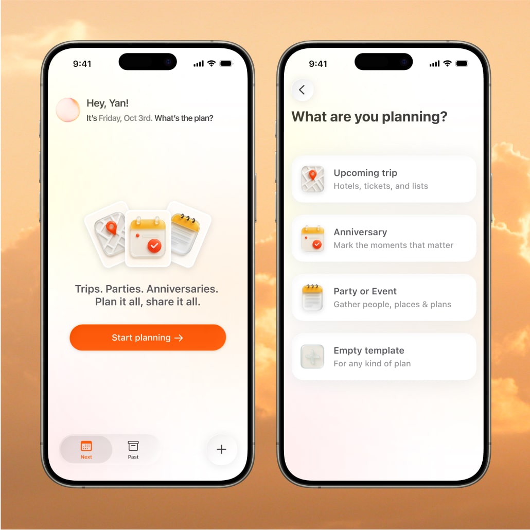 The goal was to make planning feel joyful and social, not like filling out a form – turning everyday events into little celebrations.